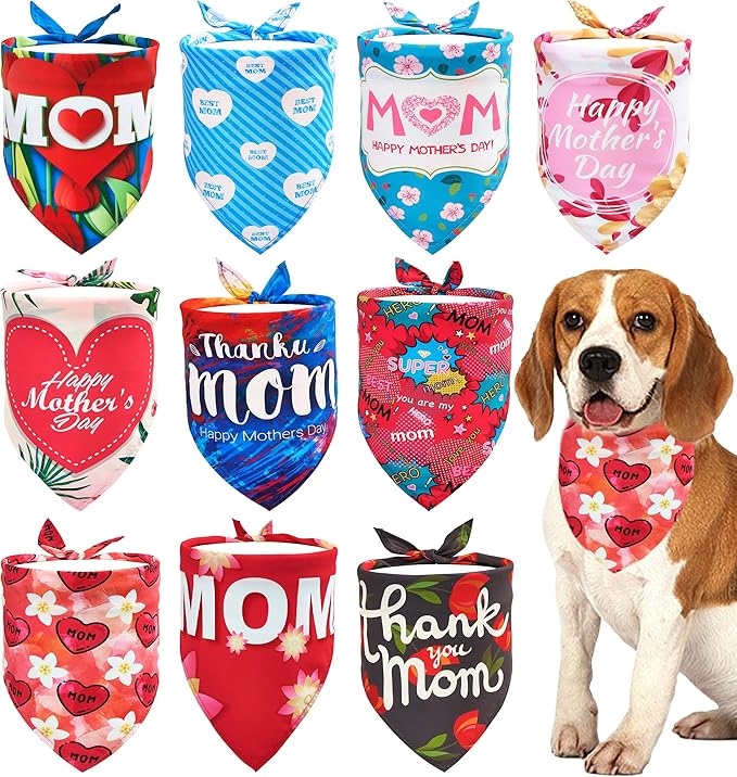 - Mother’s Day Dog Bandanas Package: you will receive 10pcs dog bandanas in 10 different patterns in red bule pink green orange;The sufficient quantity and various colors can meet your pet decoration needs and daily replacement