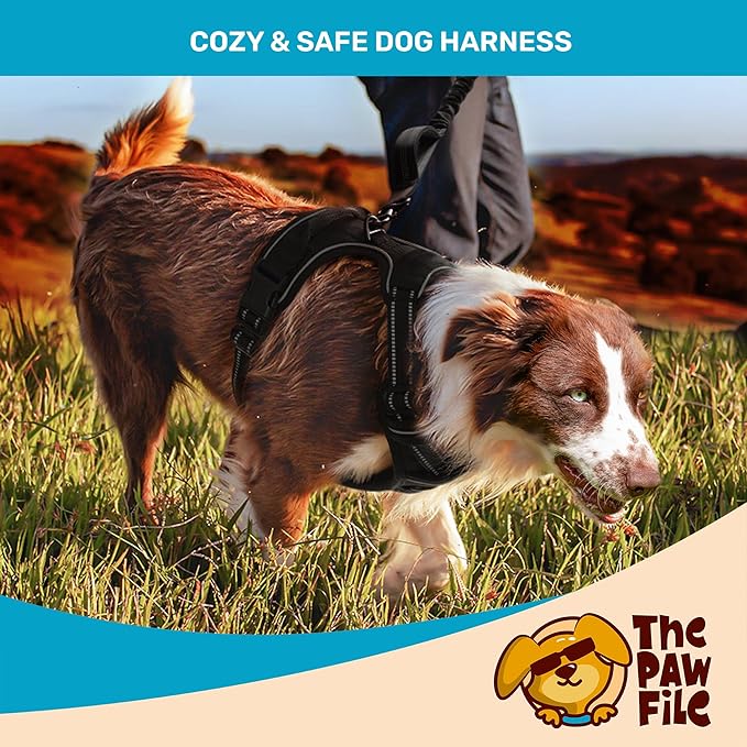 - NO PULL VEST FOR CONTROL: The Paw File Dog Harness No Pull Vest is made to keep walks with your dog easy and comfortable. It evenly distributes pressure to prevent choking and pulling, giving you better control during walks, runs, and training. Perfect for dogs who like to pull.