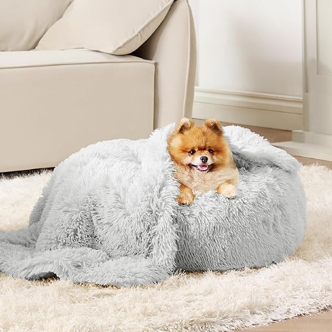 Bedsure Waterproof Dog Blankets for Small Dogs - Calming Cat Blanket for Couch Protector Washable, Long Faux Fur Pet Throw Blanket for Puppy, Reversible Furniture Protection, 25"x35", Light Grey