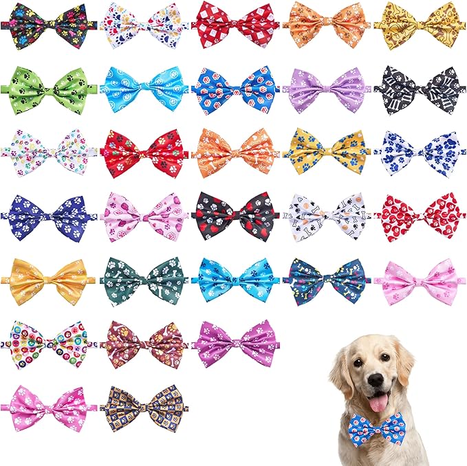 Paw Print Dog Bow Ties Bulk 30 Pcs Adjustable Dogs Bowties for Large Dogs Bow Ties Pet Party Grooming L