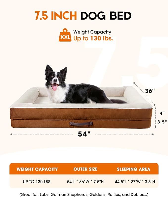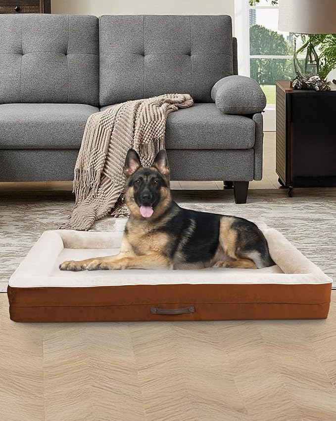 XX-Large Orthopedic Dog Bed, Egg Foam Dog Couch with Removable Washable Cover, Waterproof Pet Sofa Bed with Non-Slip Bottom and Four-Sided Bolster Cushion, Brown Dog Beds for Giant Sized Dog