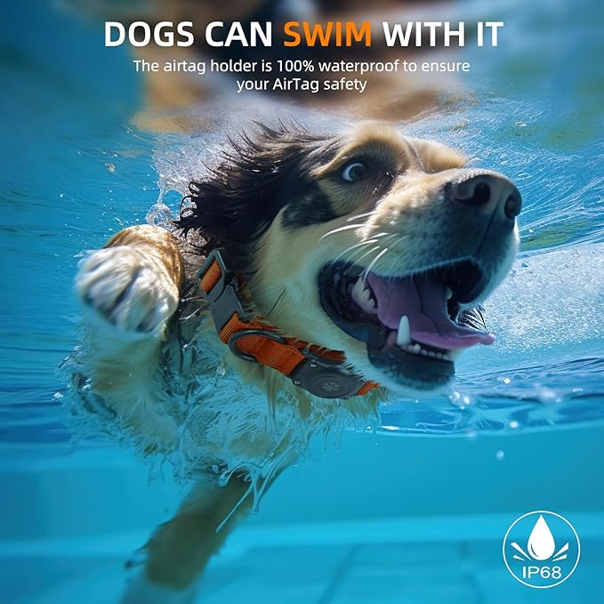 - 【100% Waterproof】-- This air tag dog collar holder with a fully sealed design and built-in waterproof ring. Dog can swims with it for a long time. It can keep your AirTags dry and avoid AirTag damage due to water Ingress.