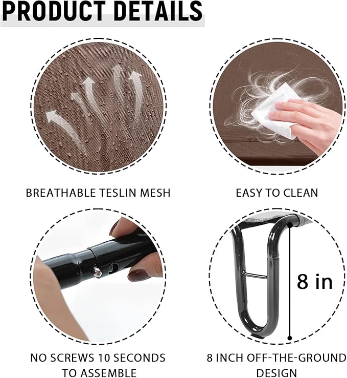 pettycare Elevated Outdoor Dog Bed - Raised Cots Beds for Small Dogs, Waterproof Pet Hommock Easy to Assemble, Cooling with Teslin Mesh, Durable, Non Slip, Indoor & Outdoor, Up to 35 lbs, Brown