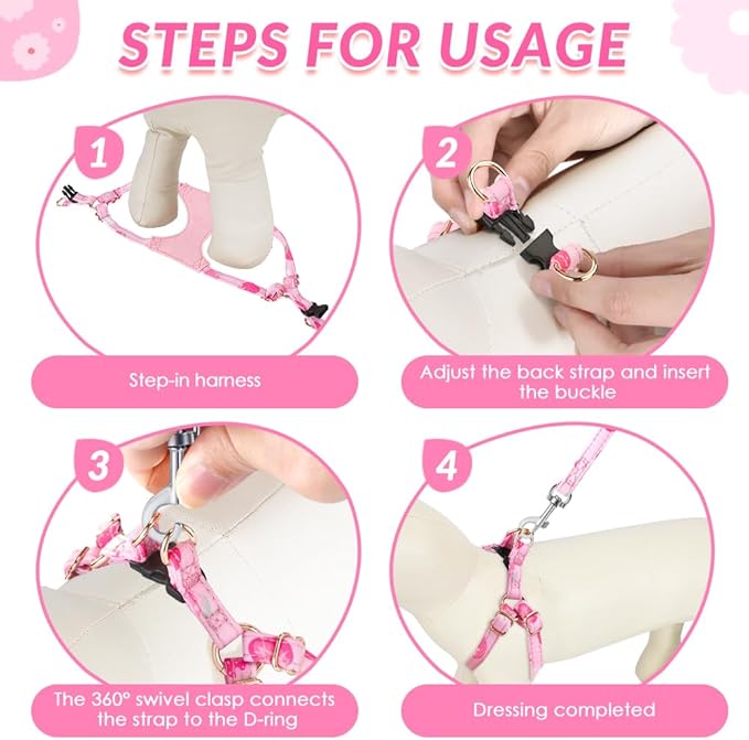 SlowTon No Pull Dog Harness with Leash - Soft Lightweight Floral Pattern Puppy Harness, Adjustable Pet Harness for Small Medium Dogs (Strawberry S)
