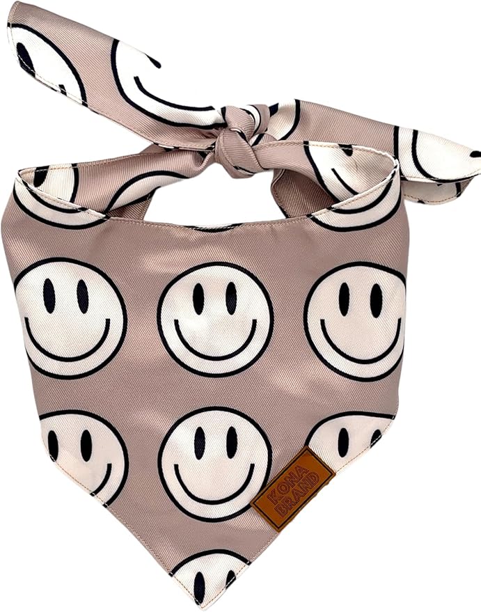 - Kona Brand Co. Luxury cat and dog bandanas. Handmade with premium silky but durable polyester fabric. Resistant to dirt and easy to wash! Custom cut/ design so they won’t roll down like other bandanas! Lightweight and breathable. Fun designs! Small 14” – fits necks up to 13” Medium 18” – fits necks up to 18” Large 22” – fits necks up to 24”