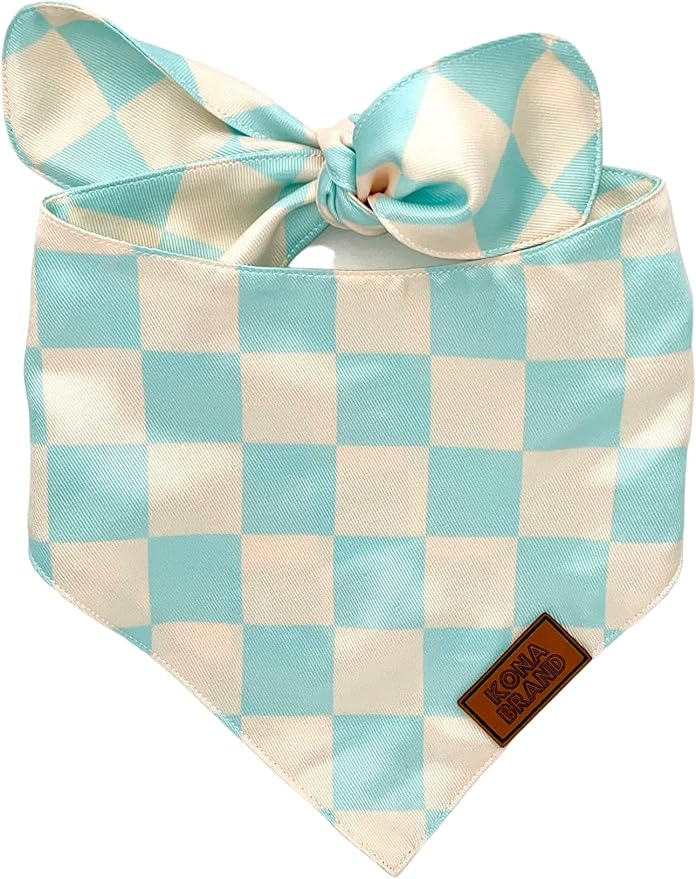 - Kona Brand Co. Luxury cat and dog bandanas. Handmade with premium silky but durable polyester fabric. Resistant to dirt and easy to wash! Custom cut/ design so they won’t roll down like other bandanas! Lightweight and breathable. Fun designs! Small 14” – fits necks up to 13” Medium 18” – fits necks up to 18” Large 22” – fits necks up to 24”