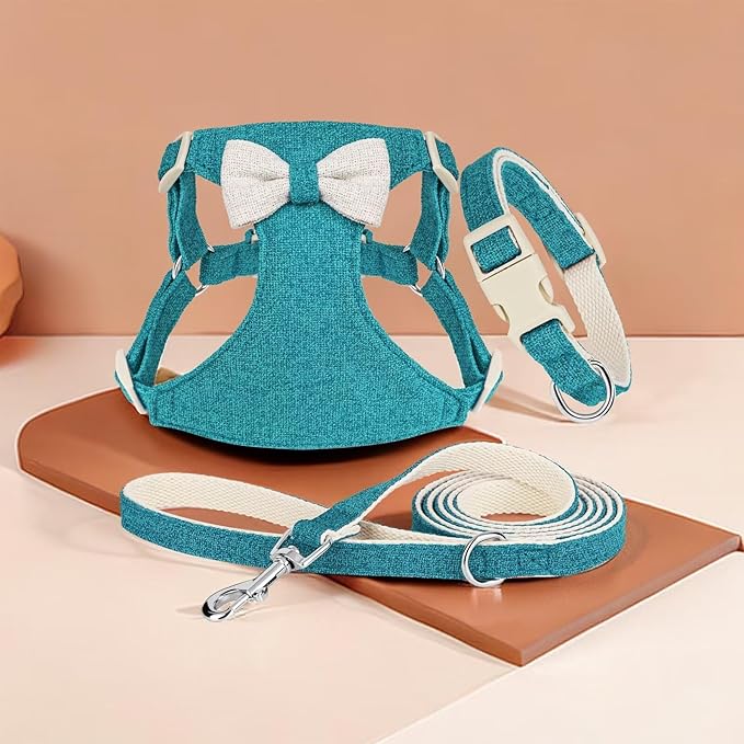 - 【Vibrant Colors & Adorable Bow】- Brighten up your pup's wardrobe with our richly colored dog harnesses available in Red, Green, Pink, and Blue, each featuring a cute bow for that extra touch of charm. The variety of colors gives you plenty of options to choose the perfect one that reflects your dog's personality and style.