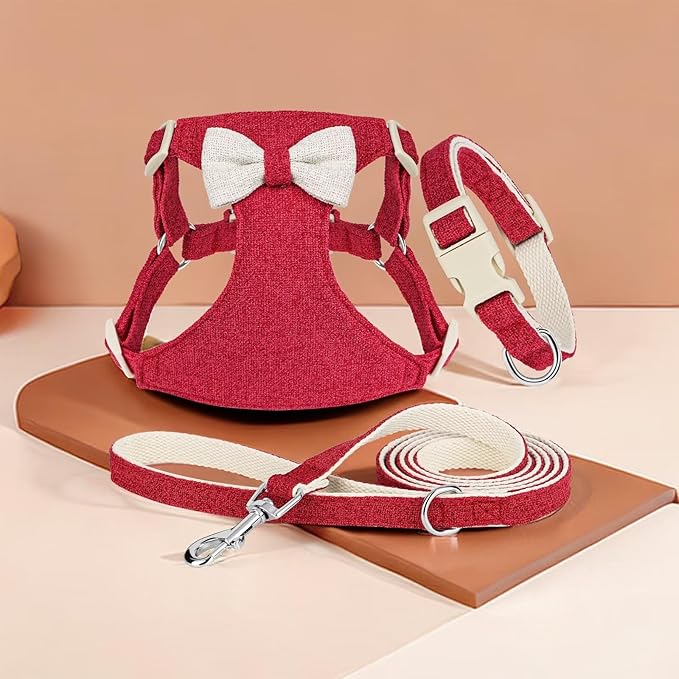 - 【Vibrant Colors & Adorable Bow】- Brighten up your pup's wardrobe with our richly colored dog harnesses available in Red, Green, Pink, and Blue, each featuring a cute bow for that extra touch of charm. The variety of colors gives you plenty of options to choose the perfect one that reflects your dog's personality and style.