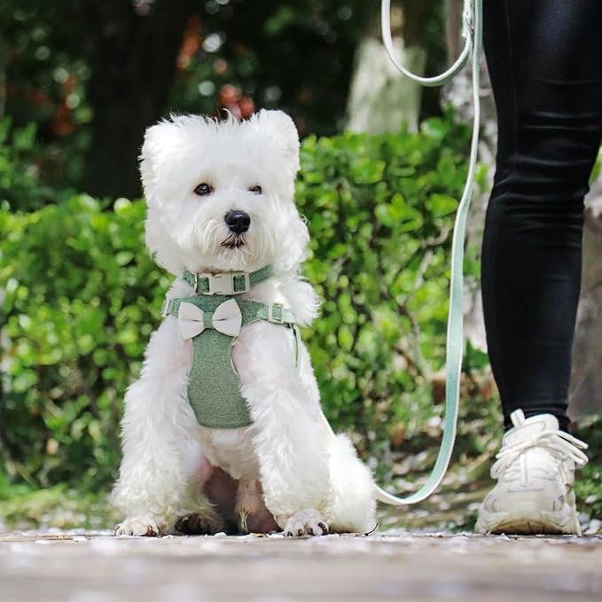 - 【Vibrant Colors & Adorable Bow】- Brighten up your pup's wardrobe with our richly colored dog harnesses available in Red, Green, Pink, and Blue, each featuring a cute bow for that extra touch of charm. The variety of colors gives you plenty of options to choose the perfect one that reflects your dog's personality and style.