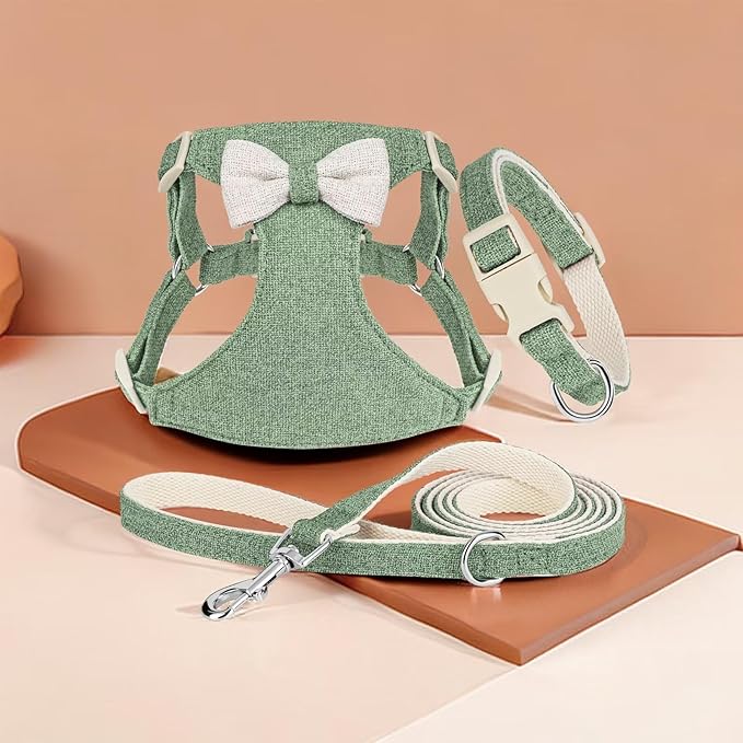 Didog Small Dog Harness Collar and Leash Set, Adjustable Lightweight Vest Harness with Cotton Soft Mesh for Small Dogs, Cats (Green, S)