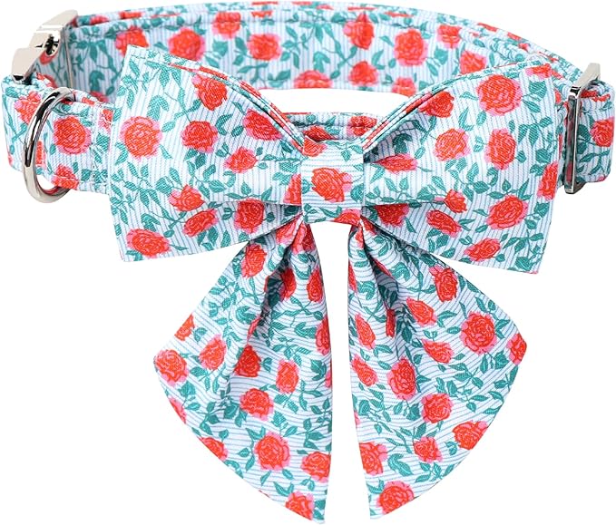 Lionet Paws Design Dogs Collar Cute Flower Sailor Bow Dog Collars for Girl Female Medium Large Dogs with Rose XL