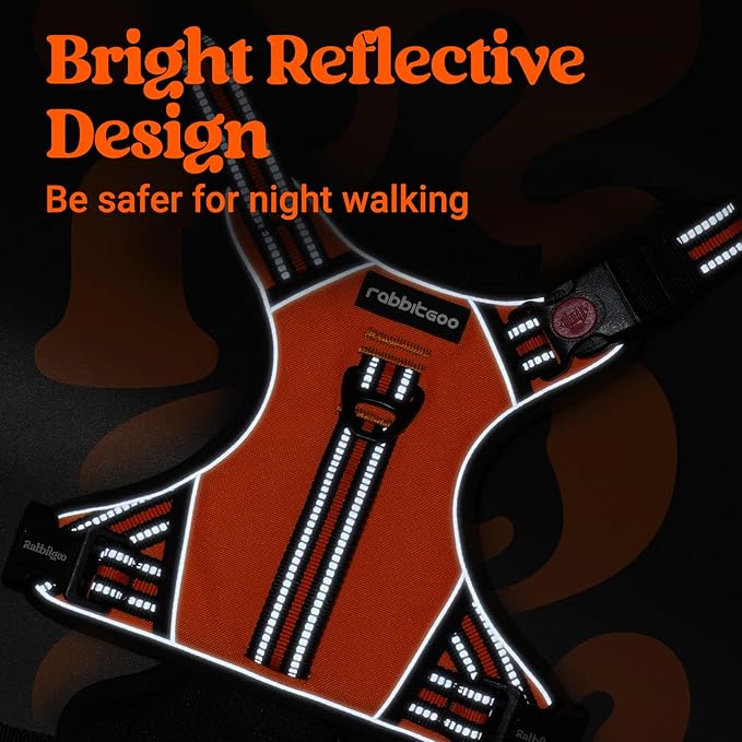 rabbitgoo Dog Harness for Large Dogs, No Pull Pet Harness with Soft Padded Handle, Adjustable Reflective Vest with 3 Buckles, Easy Walking Harness with 2 Leash Clips, Orange, M