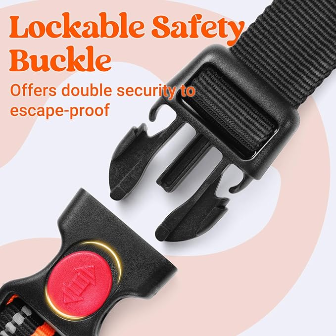 - Perfect Protection: The dog harness features sturdy and wear-resistant nylon Oxford fabric with reinforced stitching for high tensile strength. A lockable buckle at the neckline provides secure fastening, preventing accidental release under excessive force. Wide-area reflective stitching enhances visibility, making it suitable for nighttime use