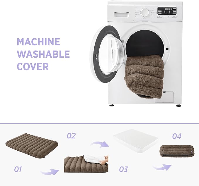Lesure Cute Orthopedic Dog Bed Large Sized Dog, Waterproof Chic Flat Pet Beds with Removable Washable Cover, Fuzzy Thick Egg Crate Foam Pet Mat for Indoor Use (36" x 27", Brown)