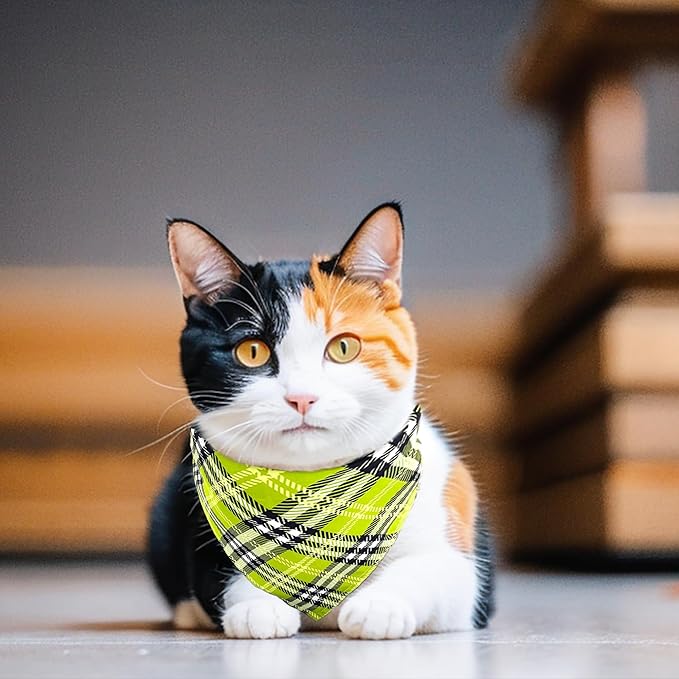 10PCS Dog Bandanas Plaid for XS Small Doggie Puppy Kerchief Washable Triangle Bibs Head Scarves Scarfs for Boys and Girls Grooming Accessories