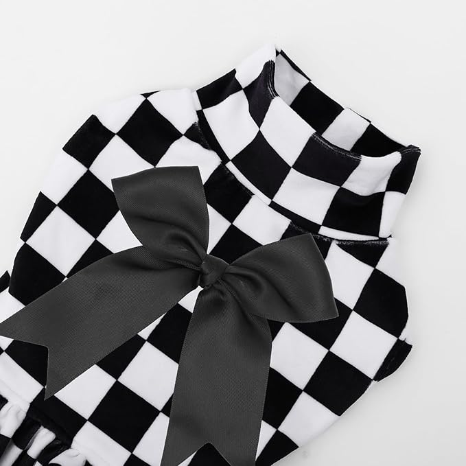 CuteBone Turtleneck Dog Velvet Dress Puppy Skirt Costume Pet Clothes Cat Apparel with Bow Hair Rope for Small Dogs CVD15M