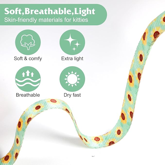 - 【Comfortable& Safe Outdoor Harness】Leekalos cat harness is light, soft, breathable, skin-friendly, and bears no weight, suitable for daily walking, jogging, training, and any outdoor recreations. It is comfortable to wear, and it will not stick hair and hurt the skin even if it is used for a long time. Also a perfect comfort harness when you’re taking your kitty to an unfamiliar place, such as the vet or groomer. Easy to clean and dry quickly, no smell.