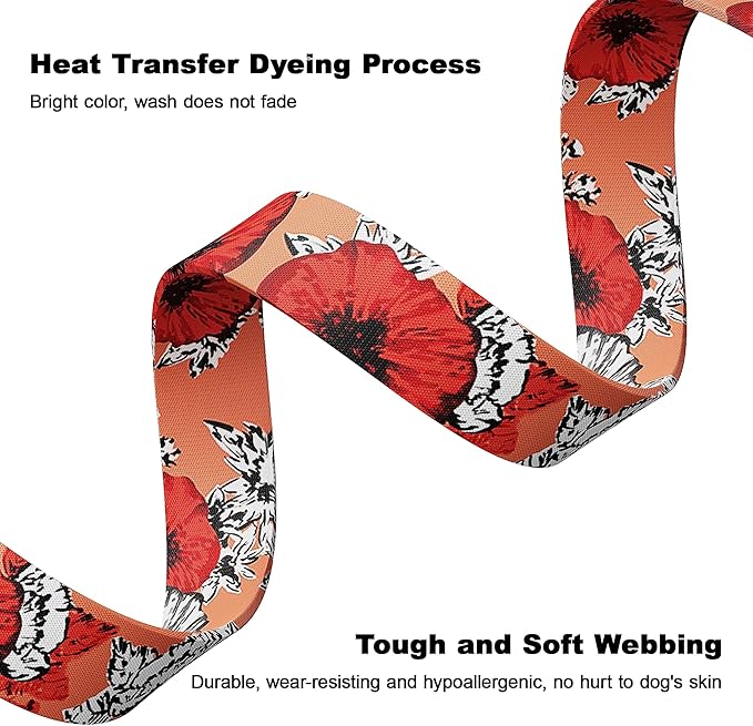 - 【Newest Pattern Design!】 Floral dog collar is designed by a French senior designer based on the popular elements of the season,and uses the newest thermal sublimation transfer process to specifically solve the problem of washing and sun fading.The clear and vivid flower pattern on the collar instantly make the dog elegant,suitable for all female,girls,male and boys dogs.Fashion cutting edge design of the flower dog collar is very beautiful and cute,make your dog stand out from other pets.