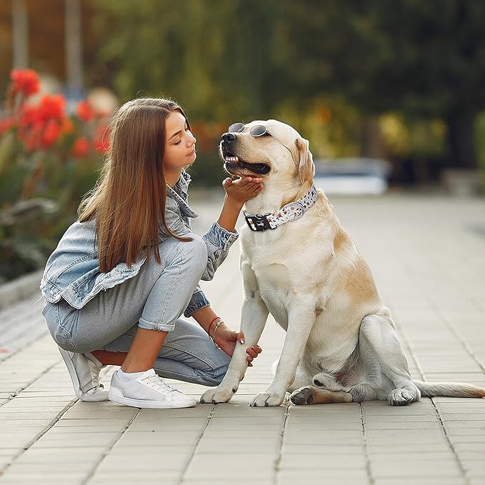 - 【Newest Pattern Design!】 Floral dog collar is designed by a French senior designer based on the popular elements of the season,and uses the newest thermal sublimation transfer process to specifically solve the problem of washing and sun fading.The clear and vivid flower pattern on the collar instantly make the dog elegant,suitable for all female,girls,male and boys dogs.Fashion cutting edge design of the flower dog collar is very beautiful and cute,make your dog stand out from other pets.