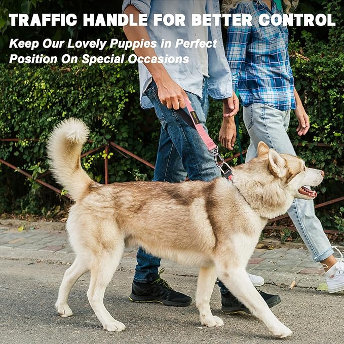 Dog Seat Belt Harness for Car, Dog Car Leash with Car Headrest & Buckle, Reflective Short Dog Leash, Pet 15 Inch Heavy Duty Leash for Dogs with Padded Handle & Locking Carabiner Clip, Pink