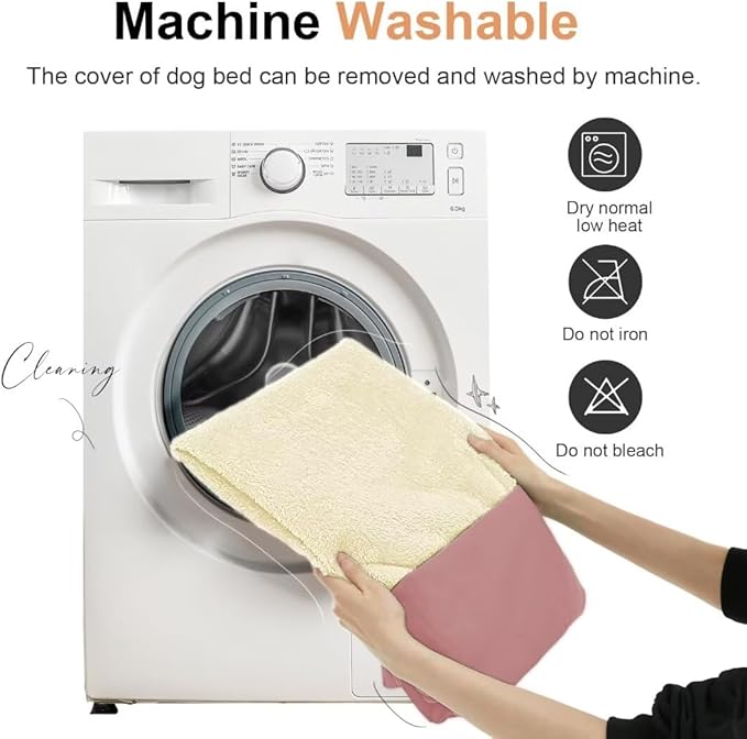 - 【Care Instruction】Our large dog beds boasts a removable bed cover, there are zippers on the top and bottom which make it easier to assemble or disassemble for quick cleaning and easy care; Before putting into washing machine, please make sure the foam and bolster fillings are removed, and the zippers are closed