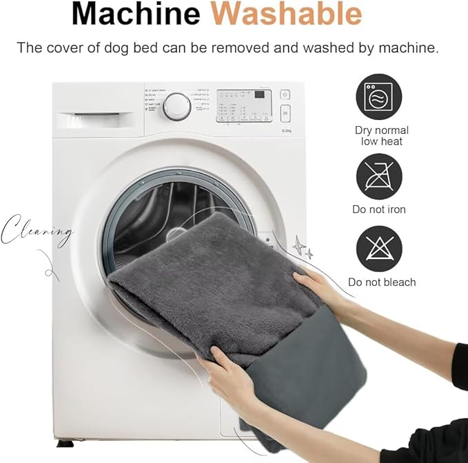 - 【Care Instruction】Our large dog beds boasts a removable bed cover, there are zippers on the top and bottom which make it easier to assemble or disassemble for quick cleaning and easy care; before putting into washing machine, please make sure the foam and bolster fillings are removed, and the zippers are closed