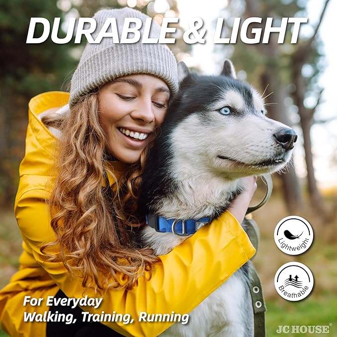 - SOFT & COMFORTABLE: Dog collars is made of soft premium polyester and padded inner by Neoprene that hugs the dog’s neck softly, reducing absorb the shock when wearing or pulling. With soft padding on the throat area for additional dog comfort.