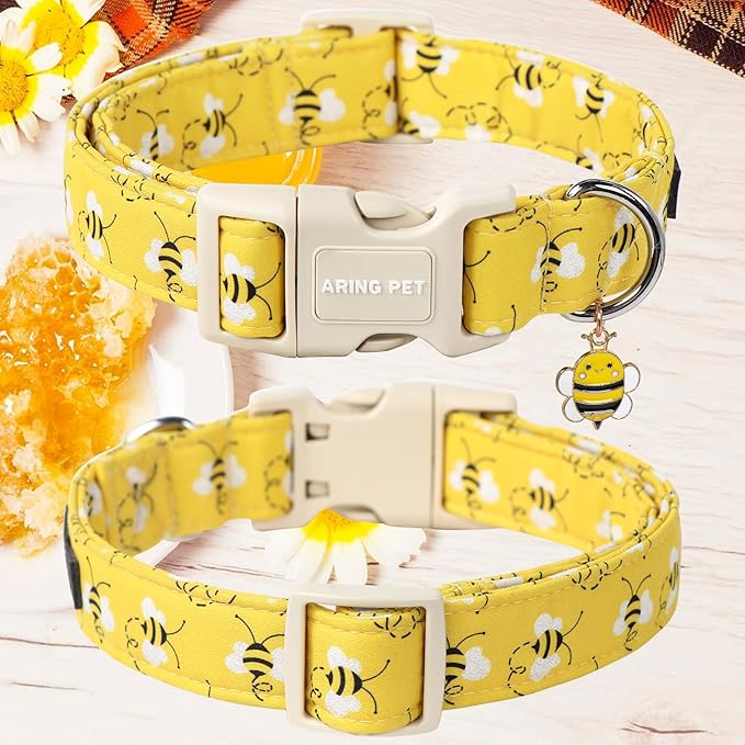 - HIGH QUALITY: ❤We focus on making high-quality pet products, and pay attention to the details of each dog collar. We use high-quality plastic buckle, which are both good-looking and durable. ❤And easy to put on and take off. Small bees dog collar can be adjusted by roll buckle, D-ring can be used to hang a dog tag and attach to dog leash.