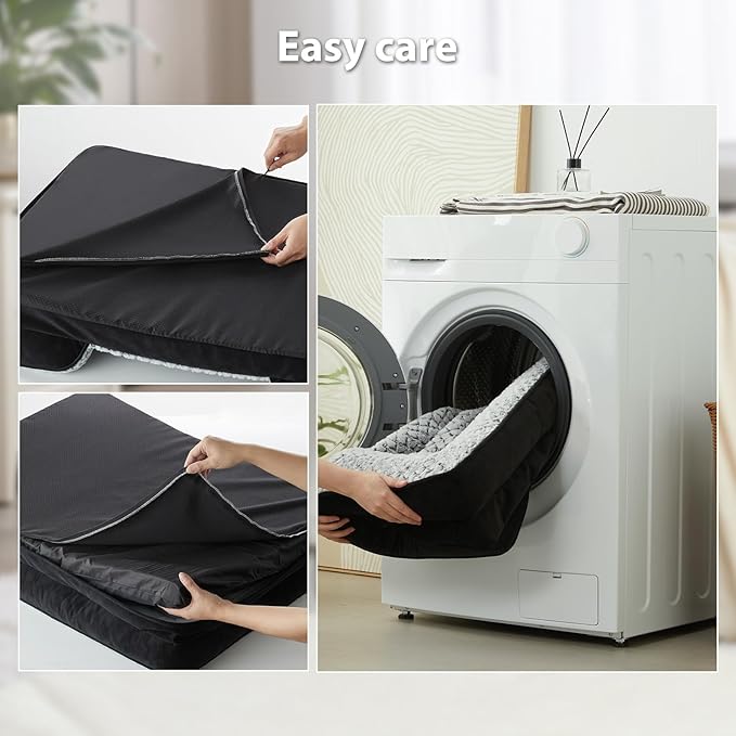 - 【Easy to Clean】The waterproof dog bed features a removable and washable cover, ensuring the pet bed effortless cleaning and care.The large dog beds with a 3-sided zipper, allowing for easy removal and reattachment. The washable dog bed with a waterproof lining of protection against accidents, keeping the washable dog bed fresh and clean.