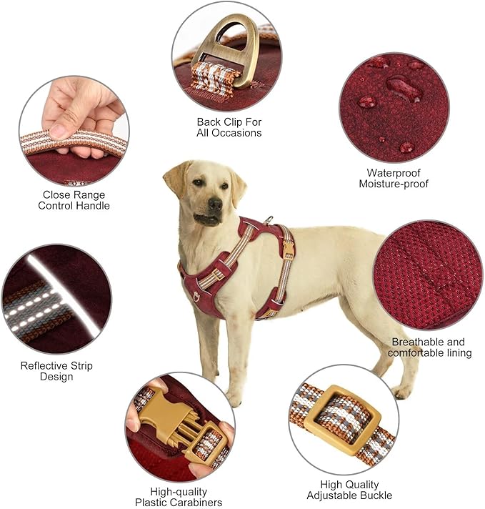 - Easy to Adjust & Wear: The stylish dog harness no pull features 4 convenient adjustment points (2 Shoulder, 2 Chest) to ensure a snug fit for medium and large dogs. Two quick-release buckles are designed not only for easy on and off, but also can withstand pulling force, secure enough for SAR dogs yet simple enough for arthritic seniors, providing security for walking, training, hunting, and any other outdoor activities