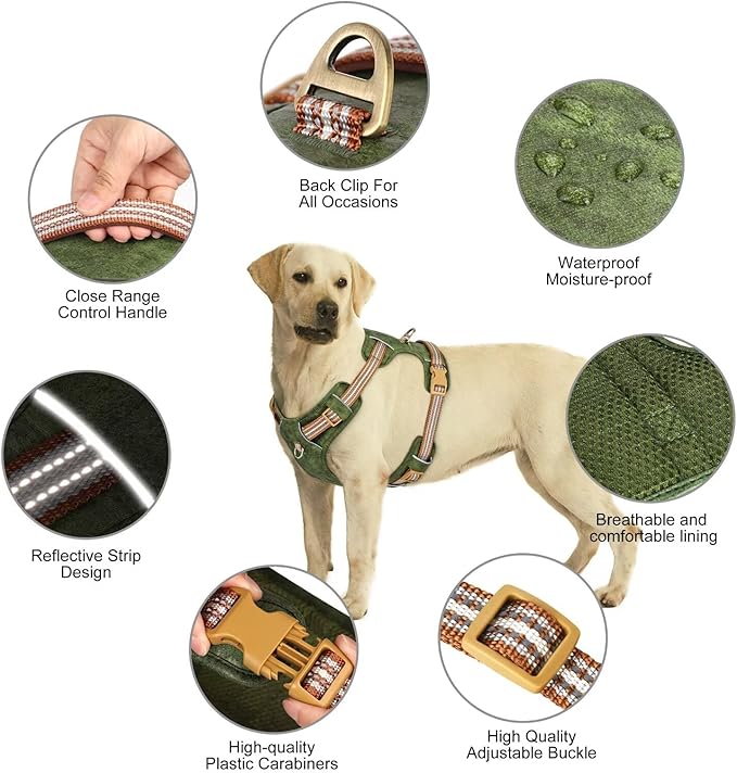 - Easy to Adjust & Wear: The stylish dog harness no pull features 4 convenient adjustment points (2 Shoulder, 2 Chest) to ensure a snug fit for medium and large dogs. Two quick-release buckles are designed not only for easy on and off, but also can withstand pulling force, secure enough for SAR dogs yet simple enough for arthritic seniors, providing security for walking, training, hunting, and any other outdoor activities
