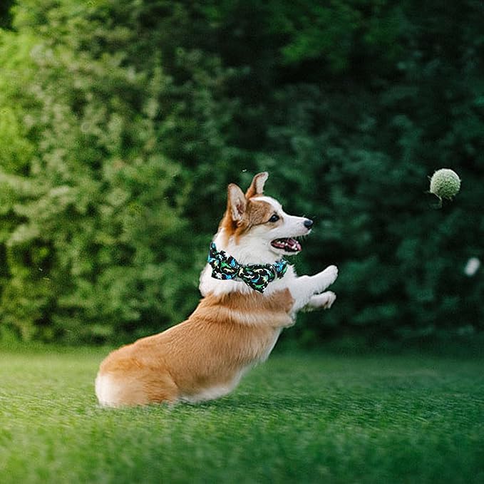 Dog Collar Dinosaur Print Pet Collar Soft Cute Dog Collar with Bow Tie Adjustable Metal Buckle Collar Gift Collar for Medium Dogs