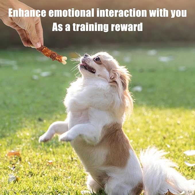 - [Ingredients] Made with real chicken and duck, wrapped around a calcium bone, helpful to calcium supplement. Rawhide free dog treats are easier to digest.