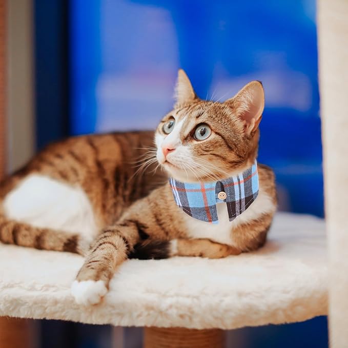 EXPAWLORER Dog Collar and Leash Set - Embroidery Pawprints Plaid Medium Dog Collar and Leash Set, Cute Dog Bandana Collar, Dog Collars for Small Medium Dogs Cats Girl Boy, SkyBlue Medium