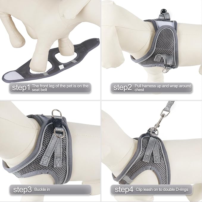YIMEIS Dog Harness and Leash Set, No Pull Soft Mesh Pet Harness, Reflective Adjustable Puppy Vest for Small Medium Large Dogs, Cats (Gray, X-Small (Pack of 1)