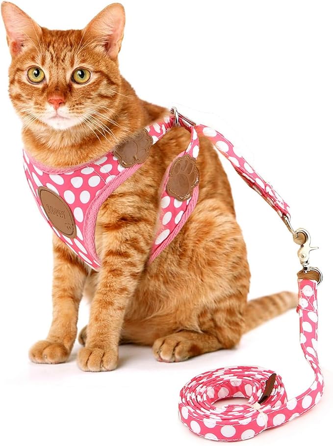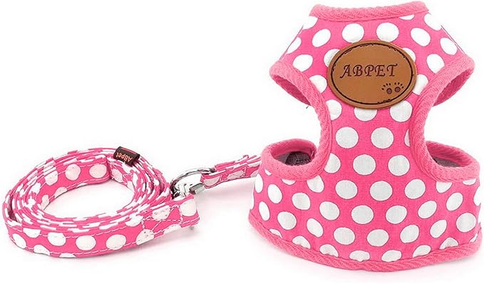 SMALLLEE_LUCKY_STORE New Soft Mesh Nylon Vest Polka Dot Pet Cat Small Medium Dog Harness Dog Leash Set Leads Pink M
