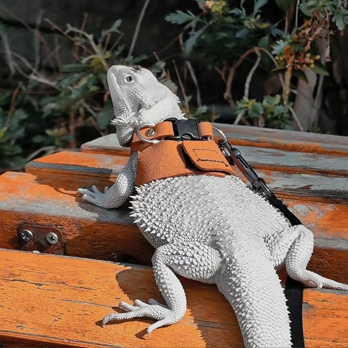 - High Quality Material: Bearded Dragon Harnesses are made of soft leather with delicate craftsmanship, no feeling of restraint.Designed to reducing tugging and pulling on your pet's neck and keep your pet safe and comfortable.Provide a full protection in chest and neck when walking your pet, prevent injuries and ensure safety of pet.