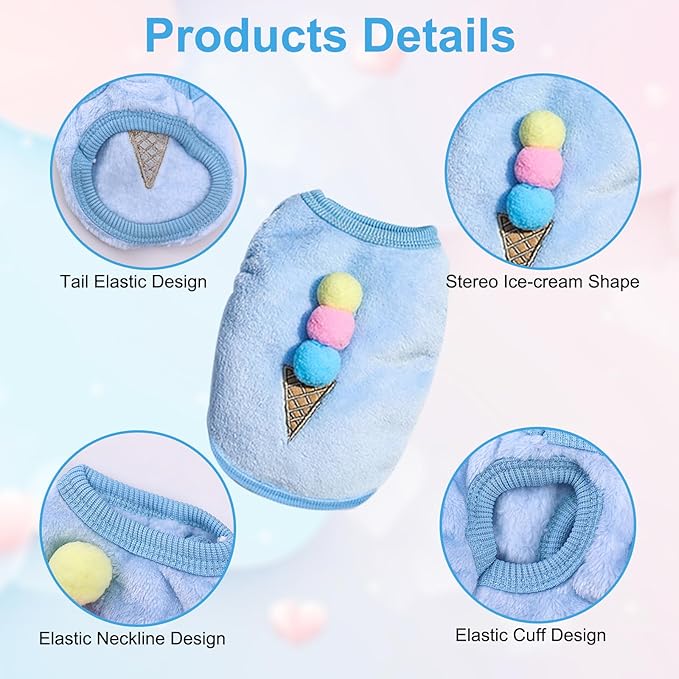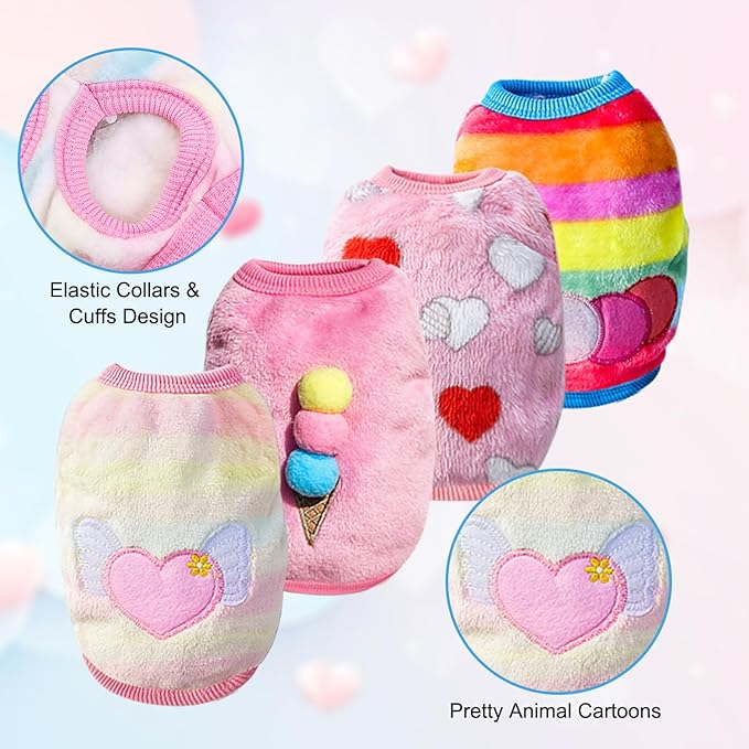 - 【Creative Design】 Each guinea pig and rabbit clothes is designed with an adorable pattern, such as: pink ice cream*1, blue ice cream*1, pink love heart*1, pink magic love heart*1, rainbow caterpillar polka dots*1, red strawberries*1, orange carrots*1, which all look chic and generous, playful and cute