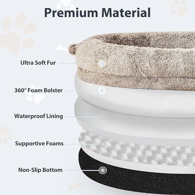 - Easy to Clean:The human sized dog bed range comes with removable covers made from faux fur. To wash it, simply remove the cover and throw large dog human bed into washing machine. This ensures your dog bed for humans stays clean, and lasts as long as possible