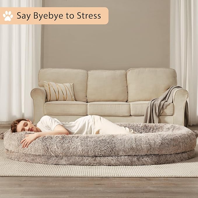 - Let Go of Anxiety:At the end of a busy day, lie down on the large plush human dog bed and feel the comfort of every inch of your skin wrapped in softness and lightness. Relax deeply and enjoy peaceful times without worry. A human dog bed for adult that leaves no place for anxiety to hide