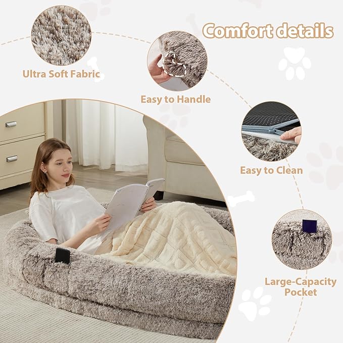 - Ultimate Comfort:Made of super soft plush fabric with a fluffy deep sleeper supportive foam bottom, this human dog bed is like being on a warm cloud for ultimate comfort. Perfect for curling up with a good book, relaxing after a long day, or even sharing cozy moments with your pet