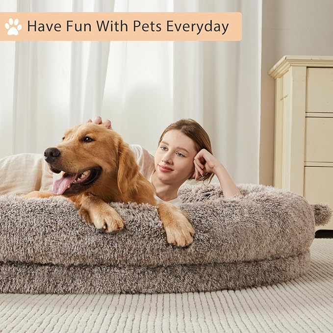 - Enjoy Fun Together: The ample space of the giant human dog bed is the perfect solution for your family to have fun. Whether you snuggle with your furry four-legged friend and feel the warmth of your pet by your side, or your lovely children wanna gather together to play, and sinking into the family fun, how cozy this will be