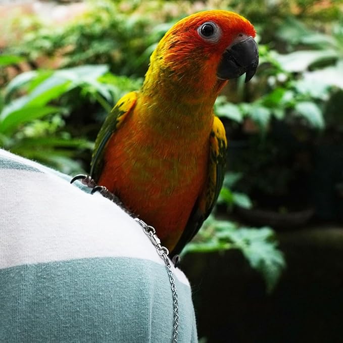 - [Reasonable Design]The chain has a rotating clasp that allows birds to move freely. The reinforced chain and foot ring can adapt to all kinds of parrots, and also suits for the large size.Our design is reasonable and safe to use, it will not harm the legs of the birds and allow them move freely, a useful tool for bird training.
