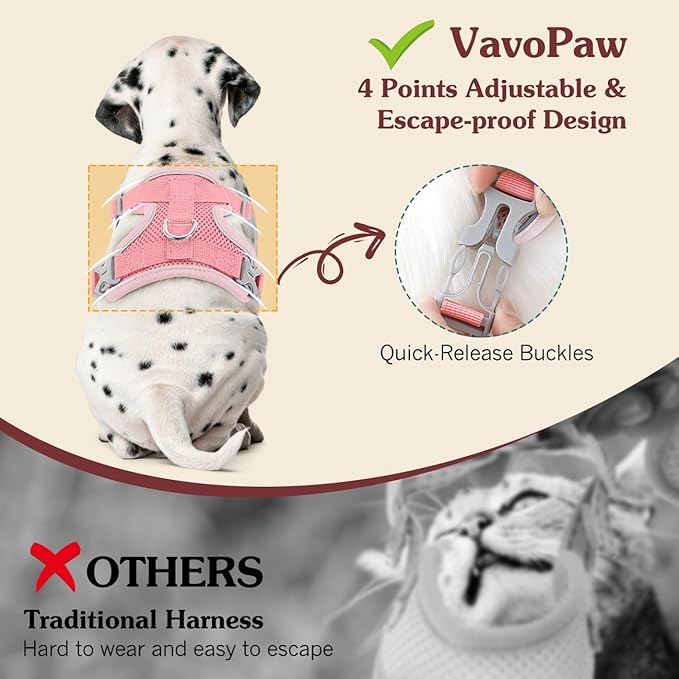 - 【Humanized Design】Pet harness has 2 quick-release buckles, it is convenient to put on and take off quickly. Elastic belt is embedded on both sides of the back of the harness, which is comfortable and fits your pet's body very well. Adjustable design added convenience. Whether at home or on the go, the travel cat harness is easy to wear, give your furry friend a fashionable and comfortable vest and enjoy the leisurely outdoor life together.
