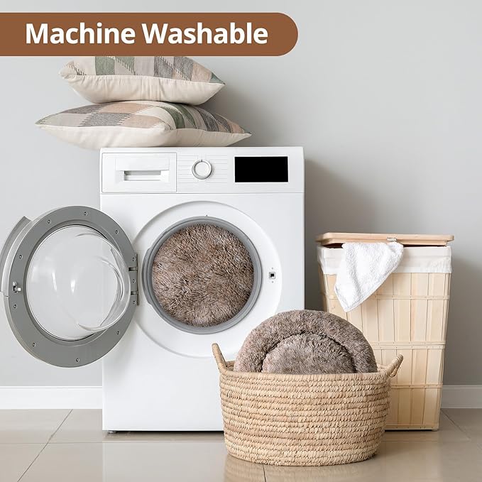 - Premium Material: The donut pet bed is featuring a plush faux fur exterior with polyester fiber fill interior, this cozy canine nest combines tactile comfort with structured cushioning