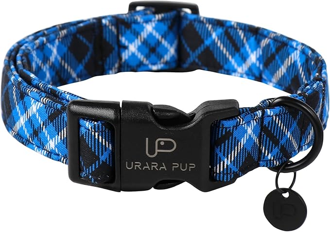 - HOLIDAY COLLAR: Classic grid pattern collar is especially suitable for Halloween. Blue plaid dog collar better shows your dog’s charm. Autumn dog flower is detachable and well-made with elastic loop that let you take the flower off and on with ease.