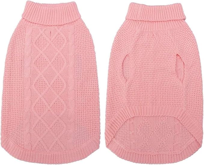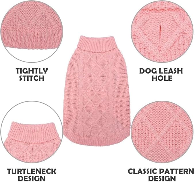 Mihachi Turtleneck Dog Sweater - Winter Coat Apparel Classic Cable Knit Clothes with Leash Hole for Cold Weather, Ideal Gift for Pet in New Year Flesh Pink X-Large