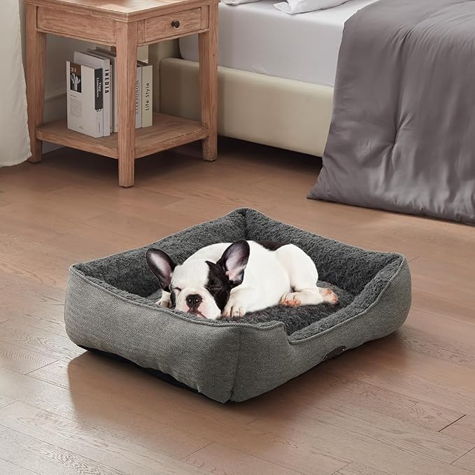 Dog Bed for Small Dogs Breeds, Rectangular Soft Kennel Bed,Washable Deluxe Plush Dog Crate Beds, Comfy Durable Pet Sleeping Bed with Pillow & Non-Slip Bottom, Size (24"X21" Gray)