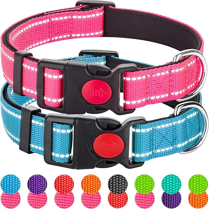 2 Pack Reflective Dog Collars for Medium Large and Small Breed Dogs Male Female,Padded Soft Durable Nylon Neoprene Collar for Puppy Dogs Girl Boy with Quick Release Safety Buckle,Pink,Blue,S