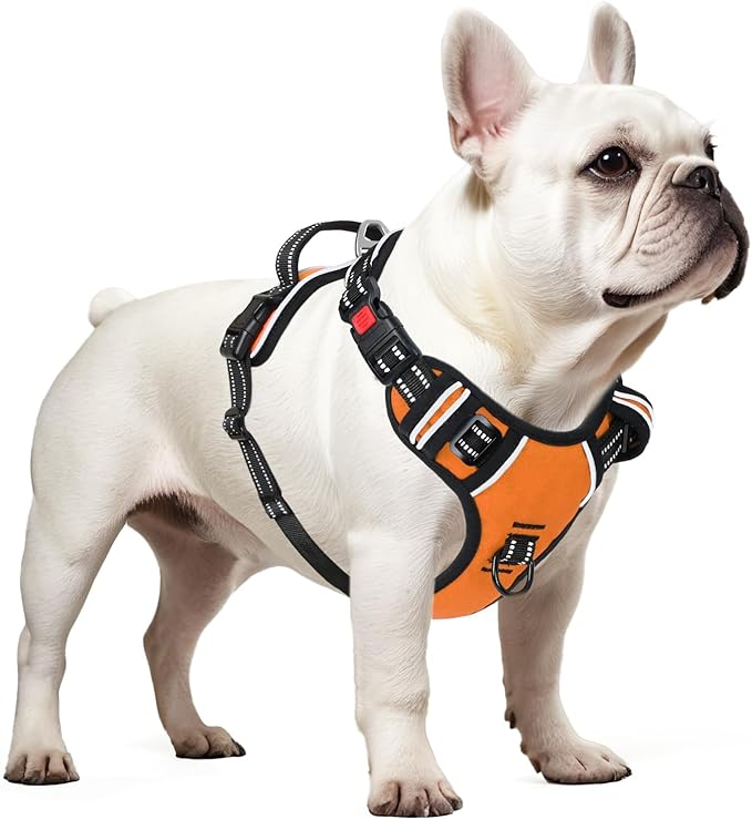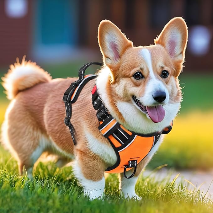 Timos Dog Harness Small Sized, No Pull with Neck Lockable Snap,No Choke Front Clip Dog Reflective Harness,Adjustable Metal Rings 3 Buckles,Easy Control Handle for Small Dogs Orange S